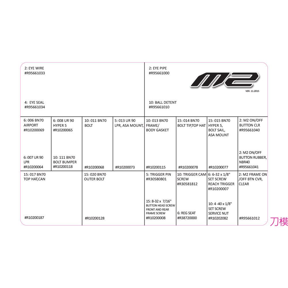 The M2 Medium size repair kit is the must have for basic backup parts. This kit includes O-rings, screws, eye pipes, eye wire, springs, button covers, and more. Make sure you never go to the field without one in your Dye gear bag!